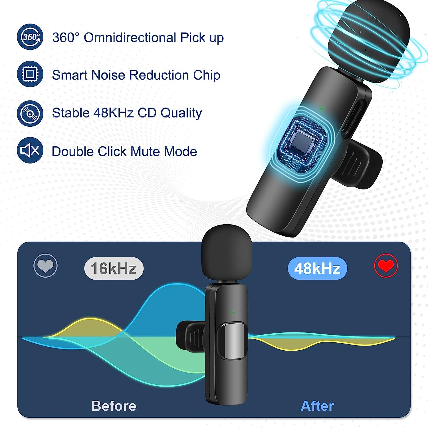 • Smart Noise Reduction & High Quality Sound: With smart technology chip, the omnidirectional condenser mics pick up sound from all angles, and offer stable full-band 48KHz CD quality. It’s equipped with sponge to reduce wind noise and plosives, AI algorithm smart noise reduction module can accurately filter all kinds of noise and has strong anti-interference ability. It can easily cope with various noisy environments and truly restore human voices. In addition, double click Mute to filter unwanted sounds at any time during recording.
