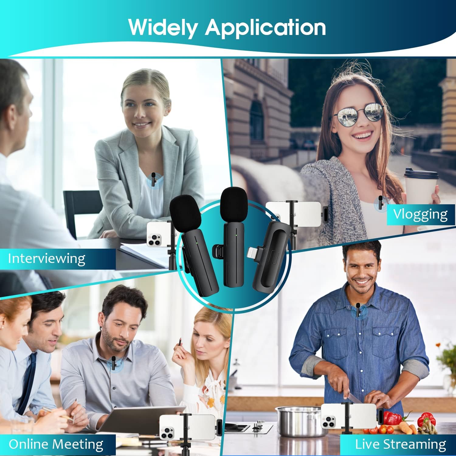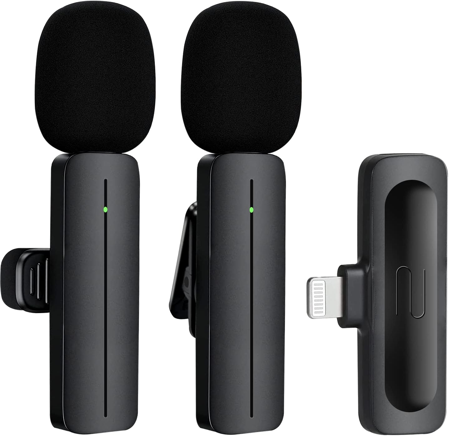 PGDLOF Wireless Lavalier Lapel Microphone for iPhone iPad - Professional Video Recording Lav Mic, 2 Clip-on Microphones for YouTube Interview Vlog Livestream & Podcast