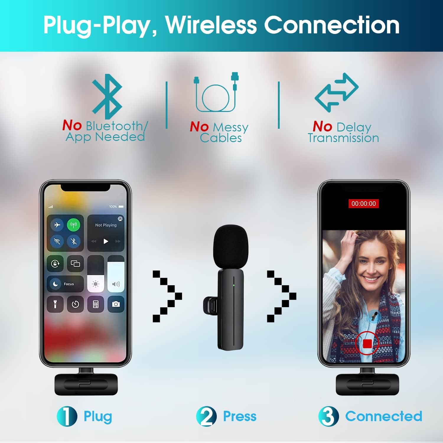 • Easy Connection, Plug & Play: The smart clip-on microphone is much easier to use than other microphones. Just plug the receiver into your devices and turn on the power switch of the transmitters, the two parts will get connected successfully and auto paired immediately. Then you can start to record voice or videos without opening extra app or bluetooth in your cellphone
