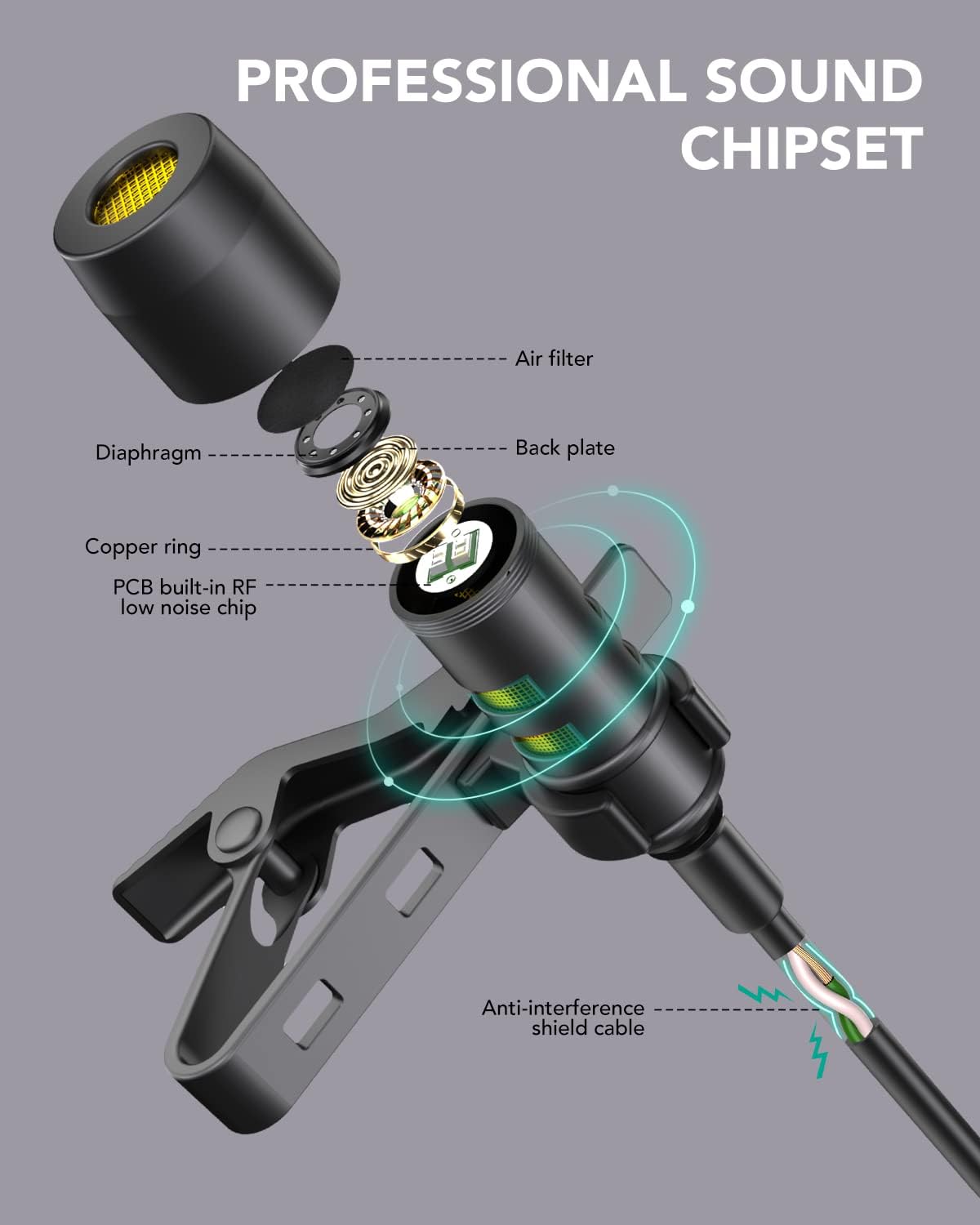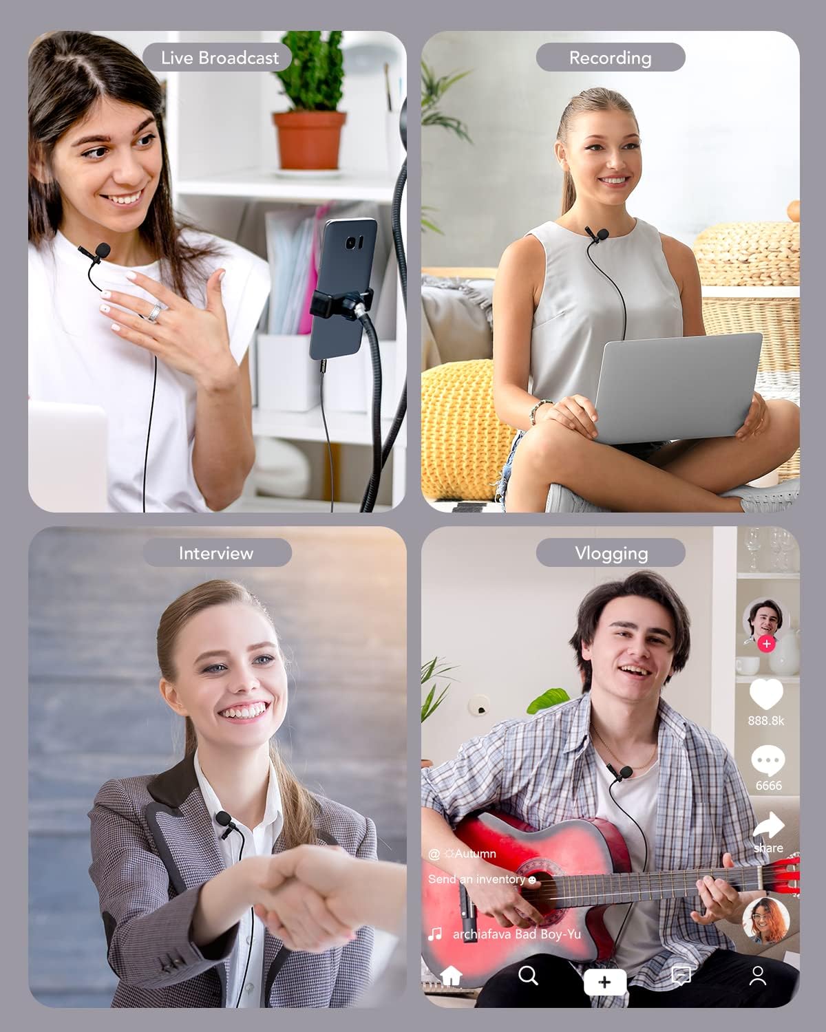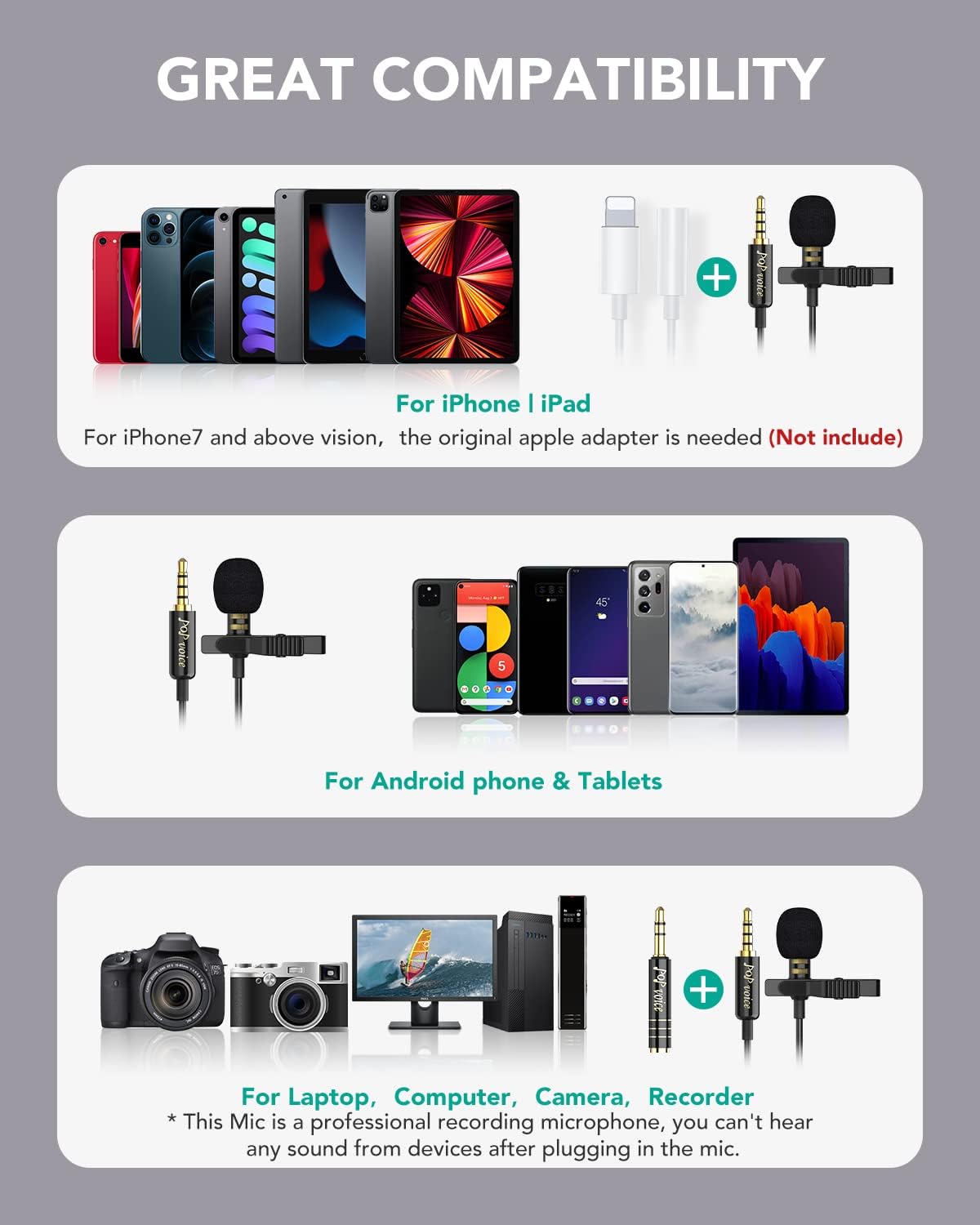 PoP voice Professional Lavalier Lapel Microphone Omnidirectional Condenser Mic for iPhone Android Smartphone,Recording Mic for Youtube,Interview,Video
