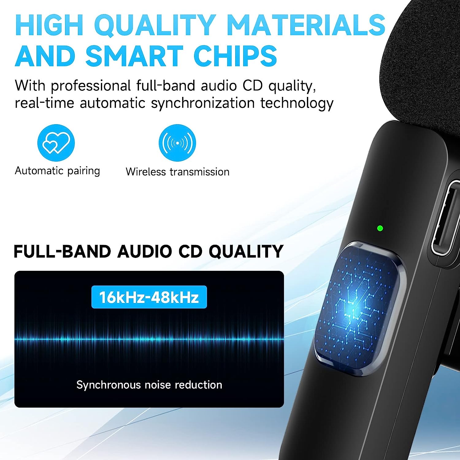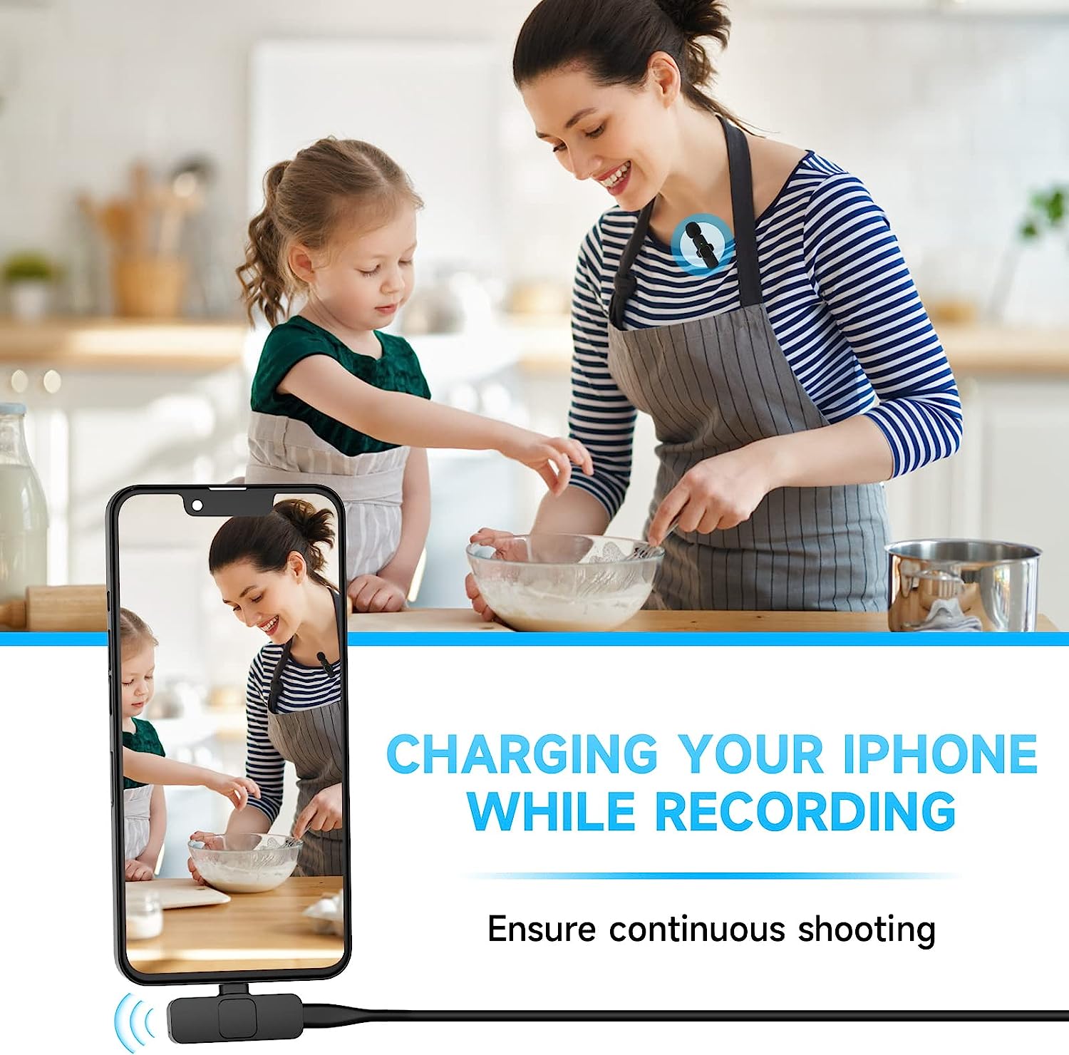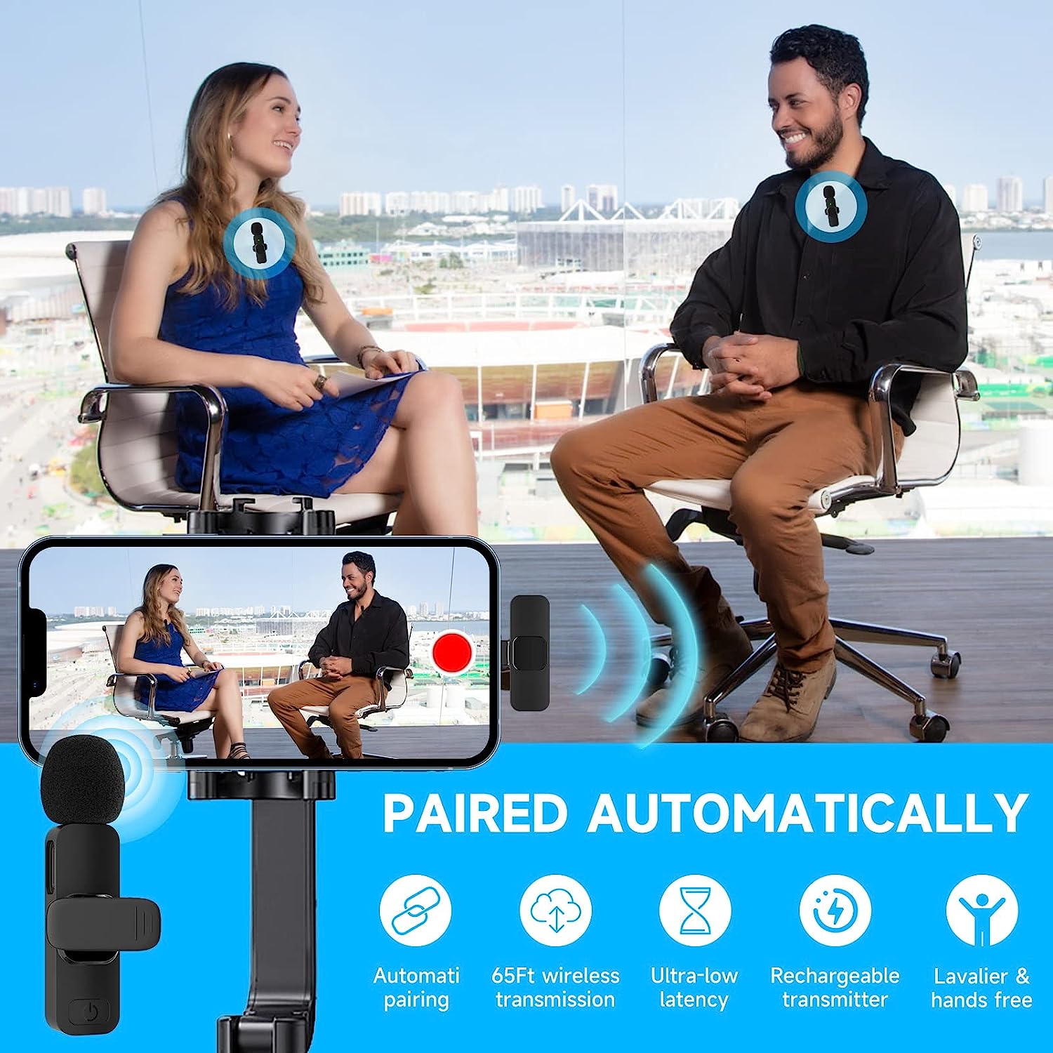 • Application : This innovative wireless lavalier microphone compatible with IOS smartphones, iPad, etc, the handheld mic is suitable for interviewing, online conferencing, podcasting, vlogging, live streaming. Bluetooth microphone for iphone. lapel microphone. (Note: The data cable inside the box is to charge the microphone, not to connect the receiver to charge the phone.)