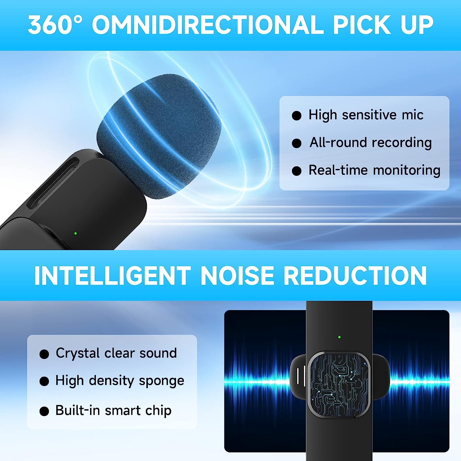 • Smart Wireless System : The wireless microphone is completely free from the shackles of wire, allowing you to complete motion shooting, mobile phone recording, and short video production in various large scenes. Clip microphone, lavalier microphone for iphone, you can just clip the microphone on your shirt to free your hand and recording at a remote distance. Wireless microphones, 65 feet stable audio signal transmission without cable.