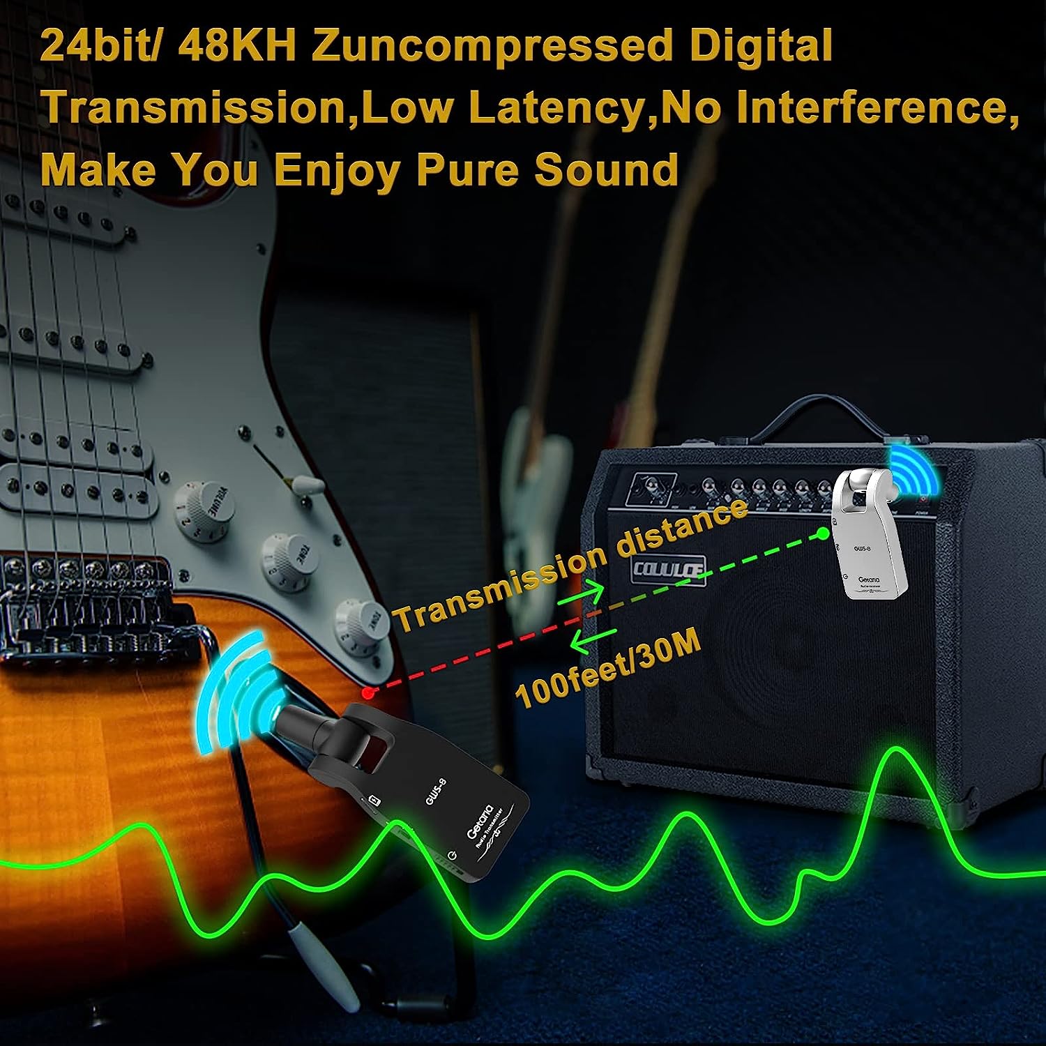 Getaria Upgrade 2.4GHZ Wireless Guitar System Built-in Rechargeable Lithium Battery Wireless Guitar Transmitter Receiver for Electric Guitar Bass