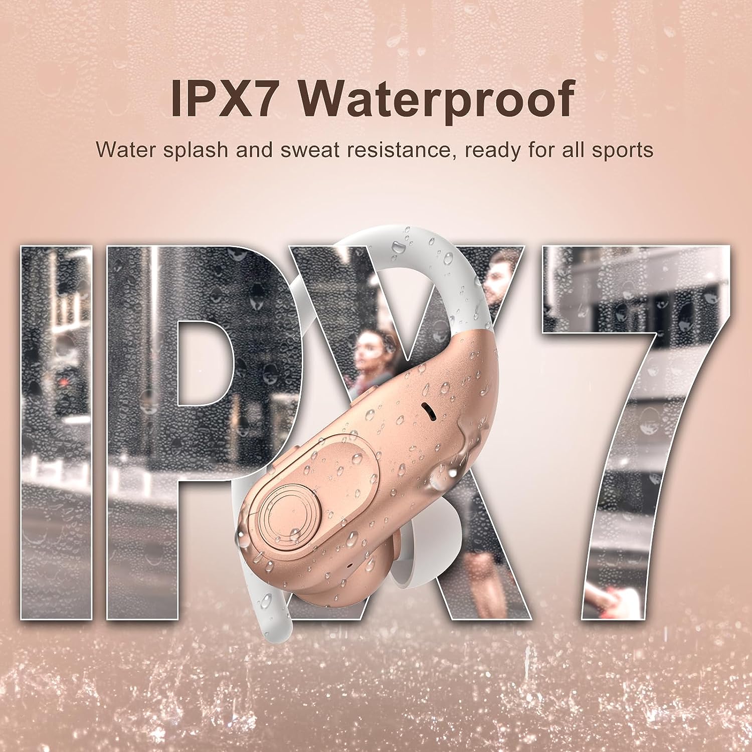 • IPX7 Waterproof: These wireless sport headphones are rating at IPX7 waterproof, the surface of both in ear earbuds is sealed to prevent sweat or rain from entering, and the internal nano-coating to airborne moisture from damaging the components. Protects the Bluetooth earbuds from slight raindrops or sweat during intense workouts. Widely applied to running, exercises, gym, travel, even on a rainy day.