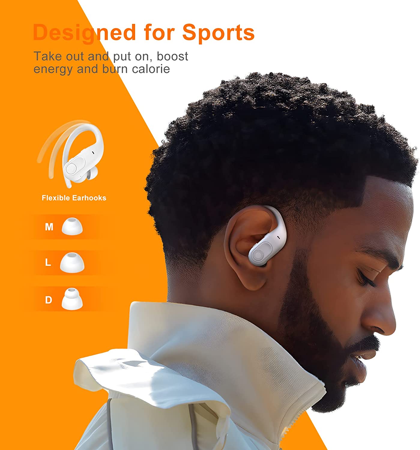 • Ergonomic & Lightweight Earhooks: Super lightweight and ergonomic silicone earhooks ensure a secure, comfortable fit for any ear. Long-term strenuous exercise will not fall off or put pressure on the ear. Equipped with 3 pairs of ear caps, which can stay on your ears and get a suitable fitting. These wireless earphones are very suitable for sports,work,driving etc..