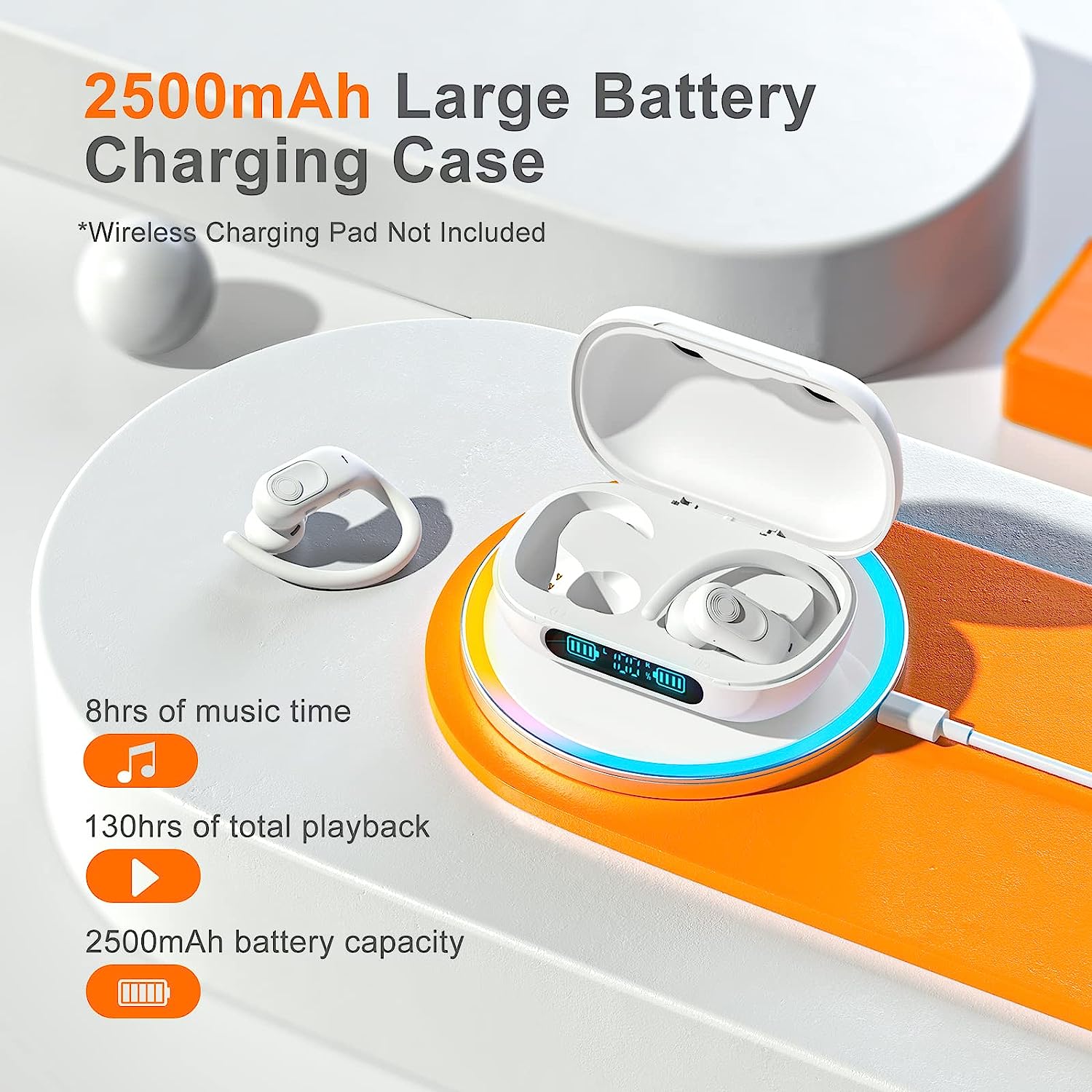 Wireless Earbuds Bluetooth Headphones 130Hrs Playtime with 2500mAh Wireless Charging Case LED Diaplay Hi-Fi Waterproof Over Ear Earphones for Sports Running Workout Gaming