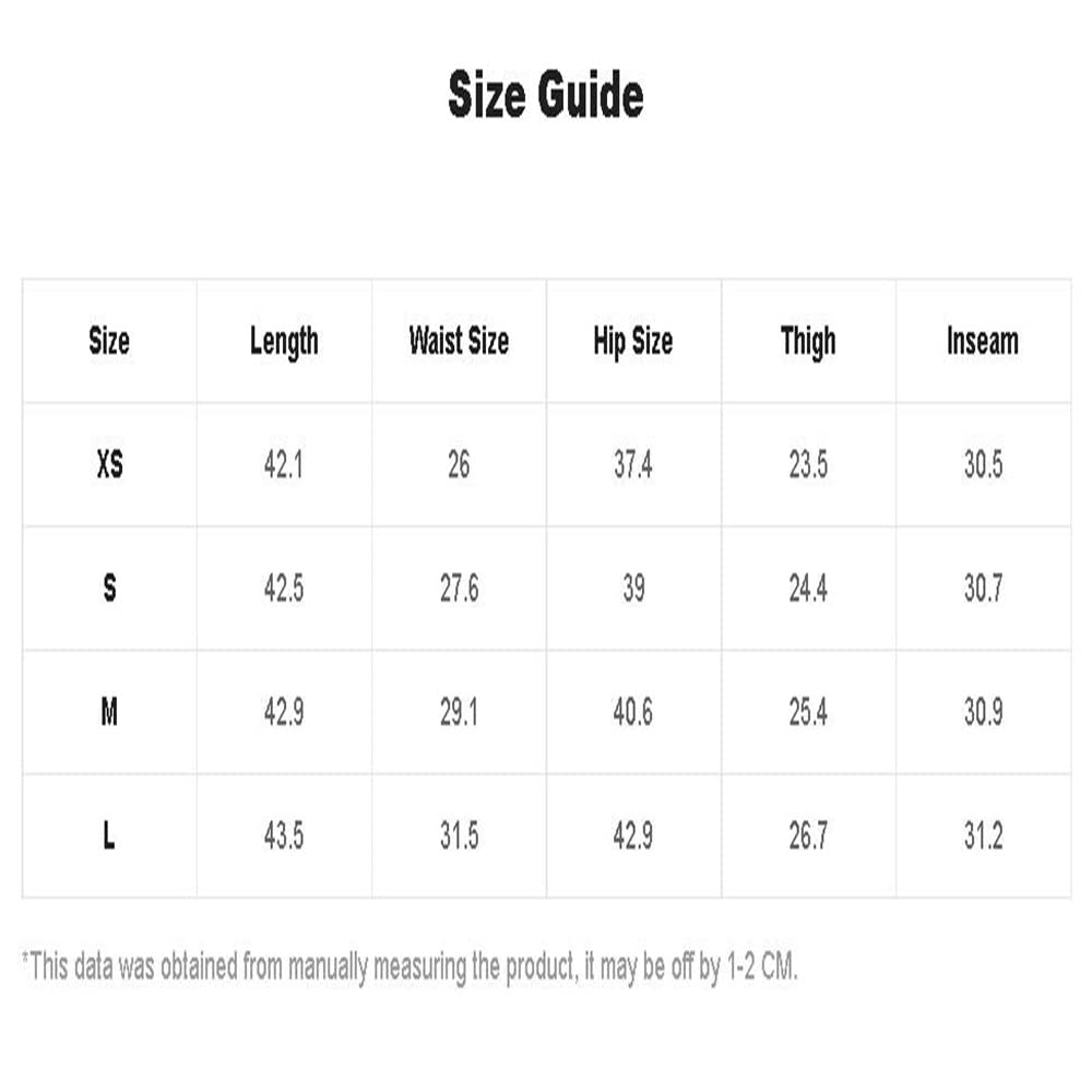 Details: Size Chart(Product Measurements): X-Small: Length: 42.1", Waist Size: 26.0", Hip Size: 37.4", Thigh: 23.5", Inseam: 30.5"