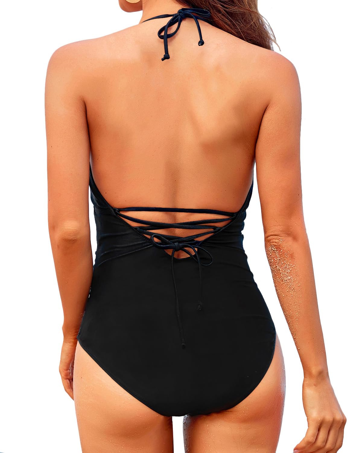 Details: Removable padded bra with halter straps one peice swimsits enables good support for the chest. Deep v neck bathing suits with lace up back one piece swimsuts design makes you more charming. Ruched tummy control bathing suis in the torso slim your body shape, It's just tight enough to show off your curves, making you look more attractive and charming at beach. Soft, stretchy fabric ensures comfortable swimwear wearing. It is great for holiday, pool party, sunbathing etc. Just enjoy yourself.Size MeasurementS(US 4-6): Bust 34"-35", Waist 26"-27", Hip 36.5"-37.5"M(US 8-10): Bust 36"-37", Waist 28"-29", Hip 38.5"-39.5"L(US 12-14): Bust 38.5"-40", Waist 30.5"-32", Hip 41"-42.5"XL(US 16): Bust 41.5", Waist 33.5", Hip 44"About UsHolipick is an international and professional online women fashion swimsuits retailer, committing to develop, design, supply and sell women swimwear. We provide customers with swimsuits of different styles, such as sexy bikini sets, fashionable one piece monokini, conservative tankini and swimming dress, plus size bathing suits and so on. All the swimsuits we provided are made of high quality material, which is very easy and comfortable to wear. Besides, Holipick always highlights the real demands of customers, so it is the greatest honor for us to design different swimsuits to boost customers confidence and make them more attractive. Therefore, we firmly believe that the fashionable design, high-quality material and greater service will make you enjoy the best shopping experience.