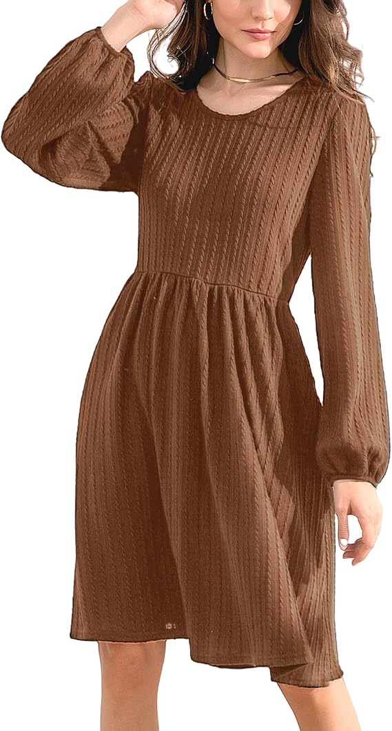 Women's Casual Knit Sweater Dress with Pockets Crew Neck Long Sleeve A-Line Dresses