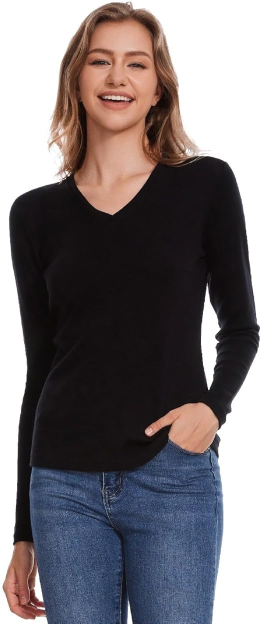Merino Wool Base Layer Women 100% Merino Wool Long Sleeve Thermal Shirts for Women for Skiing Hiking Womens V Neck Top