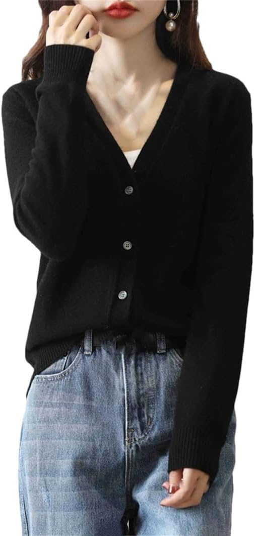 Women's Cashmere Cardigan Long Sleeve Knitted Cashmere Cardigan Sweater V Neck Button Sweaters