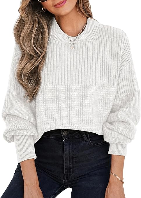EVALESS Sweaters for Women Cute Lantern Sleeve Pullover Sweater Cable Knit Tops Fall Fashion Clothes Teacher Outfits
