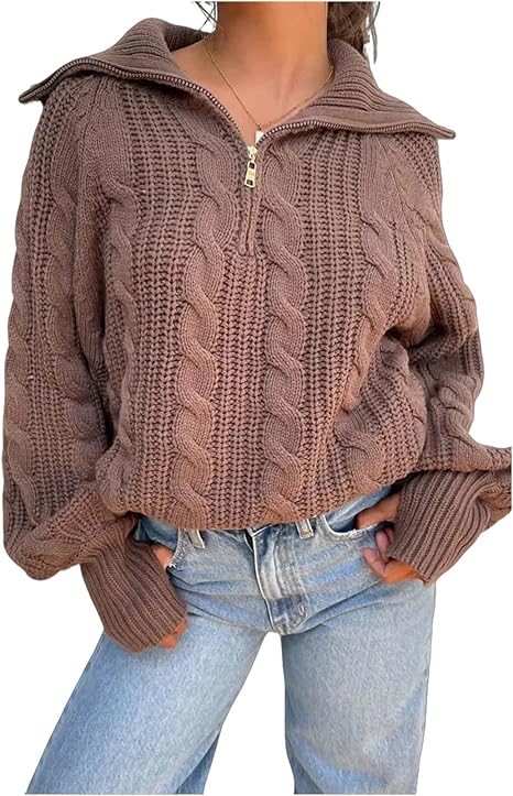 Miqil Women Cable Knit Chunky Sweater Comfy Long Sleeve Quarter Zip Knitted Pullover Fall Winter Trendy Half Zip Knitwear