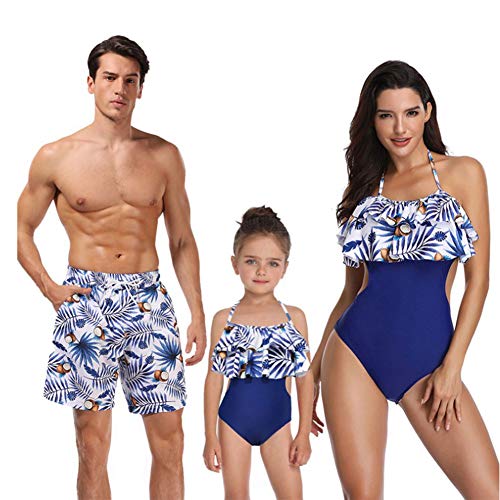 Blue Coconut and Leaves Matching Swimsuit for Family, Mommy and Me, Dad and Son Beach Bathing Suits