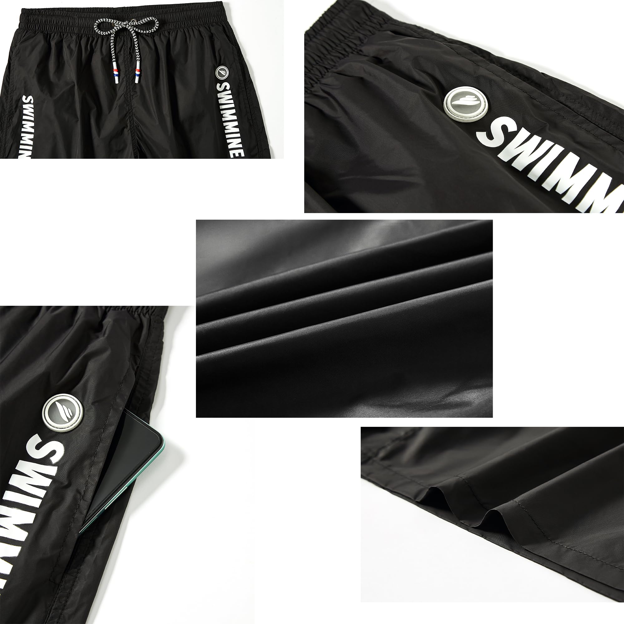 • The Matching Black Swimtrunk: Constructed with quick-dry fabric, elastic waistband coupled with a drawstring ensures a secure and comfortable fit, it also equipped with two convenient side pockets offering practical storage, a built-in mesh lining for added support and comfort, providing an extra layer of coverage and minimizing chafing.