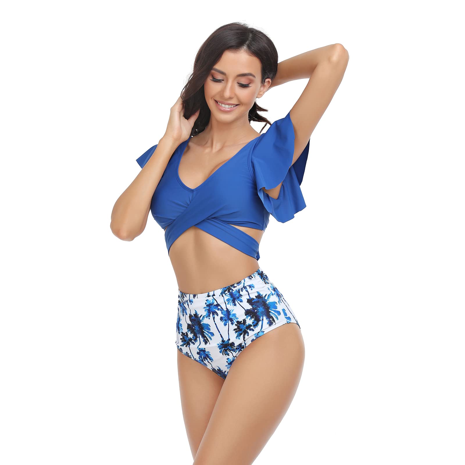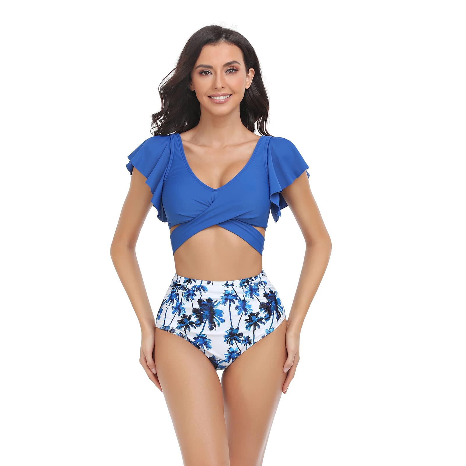 • Women's bikini set: The adjustable belt feature and flying short sleeves of the blue bikini top make this a stylish and comfortable choice for women who want to look great at the beach or pool, while the high waisted bikini bottom made of Nylon offers coverage and comfort.