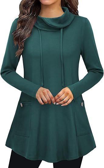 Bulotus Women's Long Sleeve Cowl Neck Casual Tunic Tops with Pockets