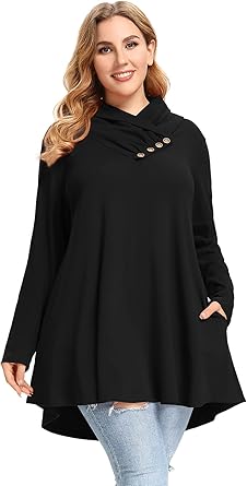 LARACE Cowl Neck Sweatshirts For Women Plus Size Tops With Pockets Long Sleeve Tunic Casual Pullover Button Down Shirt