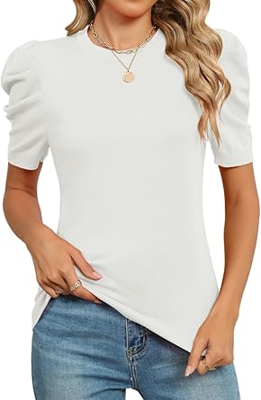 AKEWEI Puff Short Sleeve Sweater for Women Tops Trendy Fall 2024 Business Casual Outfits Knit Crewneck Shirt Blouses