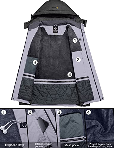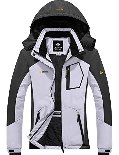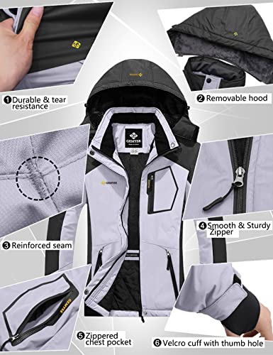GEMYSE Women's Mountain Waterproof Ski Snow Jacket Rain Winter Jacket Coat Hooded Windproof Parka(Light Grey,Medium)