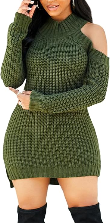 sexycherry Casual Sweater Dress for Women Elegant Long Sleeve Off Shoulder Knit Pullover Sweater Dresses Winter