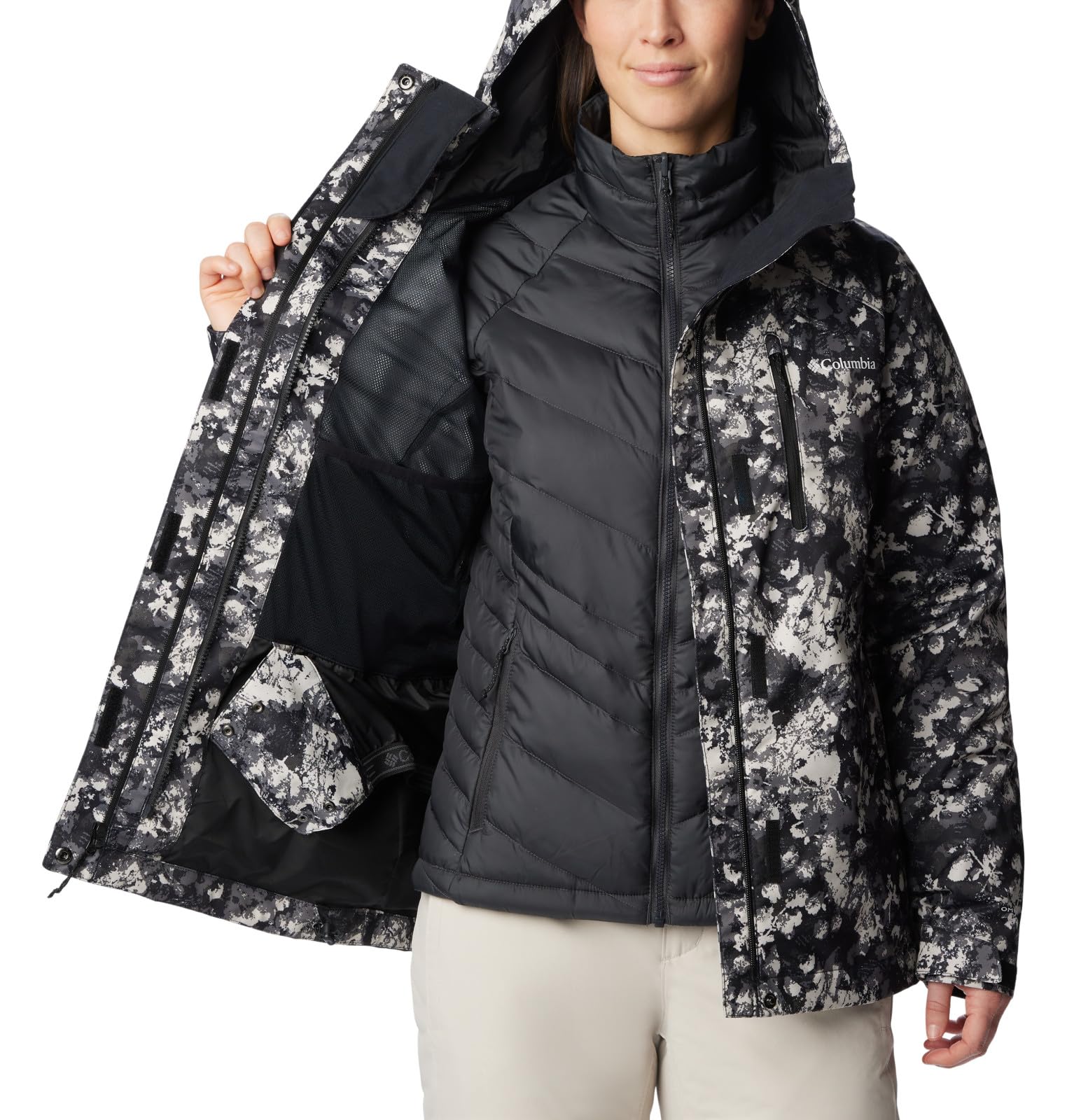 Details: Finding an all-inclusive women’s winter jacket that can be used in different weather conditions can be a challenge. Fortunately, the Columbia Women’s Whirlibird IV Interchange Jacket is a feature loaded multiple-use winter coat. This winter jacket utilizes the classic three-in-one design. It features a waterproof and breathable outer shell and an inner windbreaker layer that can be worn separately, or zipped together for extra protection against wet and cold weather. The outer shell is designed to keep the rain and wet snow out, with critically sealed seams. Meanwhile, the inner jacket has been made with our advanced Omni-HEAT™ technology that combines the thermal reflective lining, and our Thermarator™ insulation for maximum comfort and warmth. When the ever-evolving elements go from super cold, to super wet, and everything in between, this zip-in interchange system is just the versatile solution You've been looking for. The waterproof outer shell features underarm venting, an adjustable hood with drawcord adjustment, and a pocket for every need. Pockets include a ski pass pocket, a pocket for goggles, zippered chest and hand pockets, plus an interior security pocket. The interior jacket is designed with our reflective silver dot technology, engineered to maintain natural body heat, increasing comfort while keeping weight down. Rounding it all out, the adjustable cuffs and adjustable drawcord hem, lock it all in, keeping the snow, rain and cold out. Available in a wide range of colors and patterns and sizes. Available in extended sizing. Active and Regular Fit. To ensure the perfect fit, follow these steps for measuring and refer to the size chart. To determine the neck size, measure at the base or thickest part of your neck. For the sleeves, start at the center back of your neck and measure across the shoulder and down to the wrist. Round up to the next even number. For the chest, measure at the fullest part of the chest, under the armpits and over the shoulder blades, keeping the tape measure firm and level. Waist: Measure around the natural waistline, allowing the tape measure to sit comfortably. Imported. Made from 100% Polyester. Zippered closure. Machine Wash.