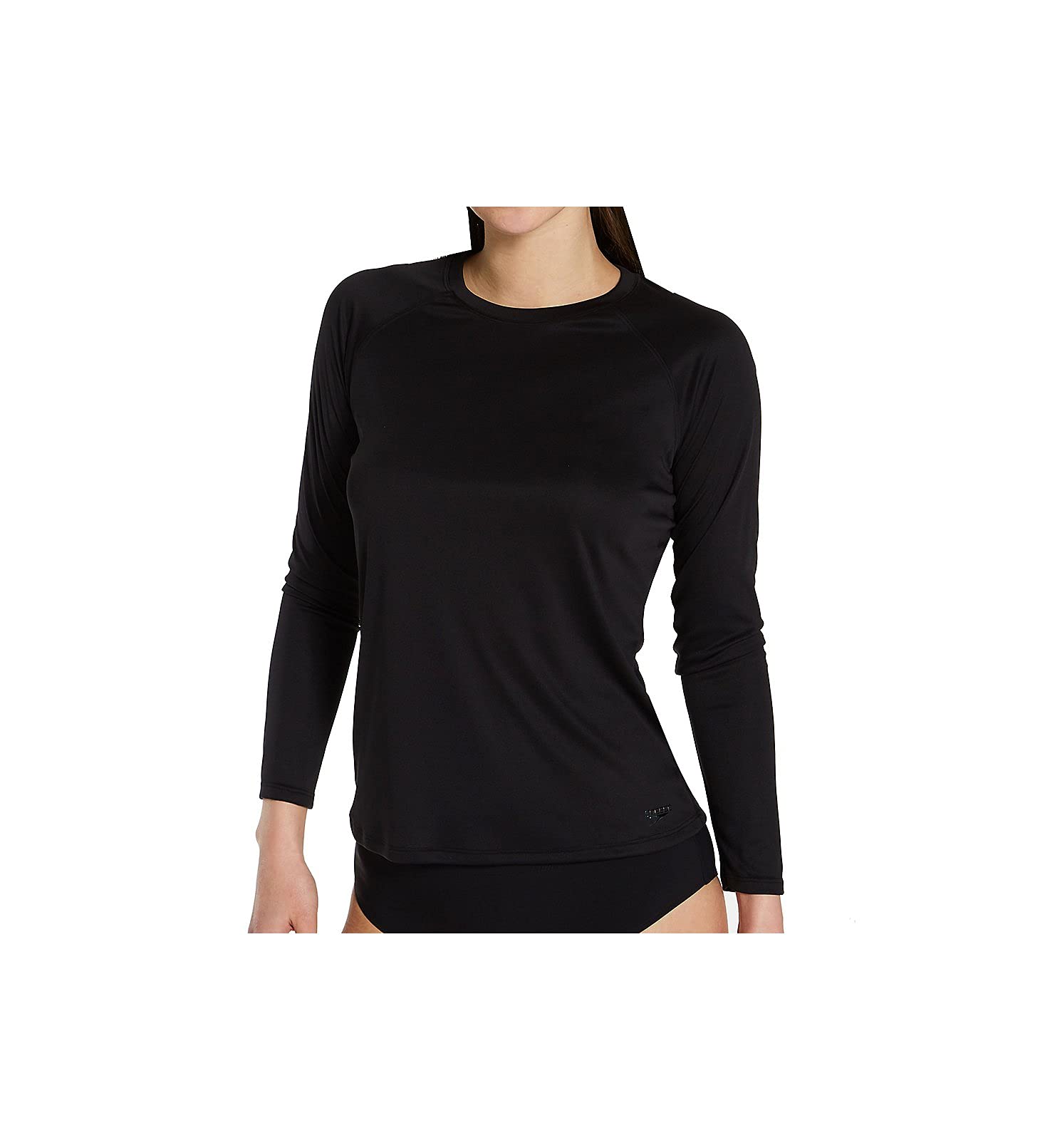 Details: Cover up in and out of the water wearing this swim t-shirt. The long-sleeve style has a crewneck design and is made from quick-dry fabric finished with UPF 50+ sun protection.