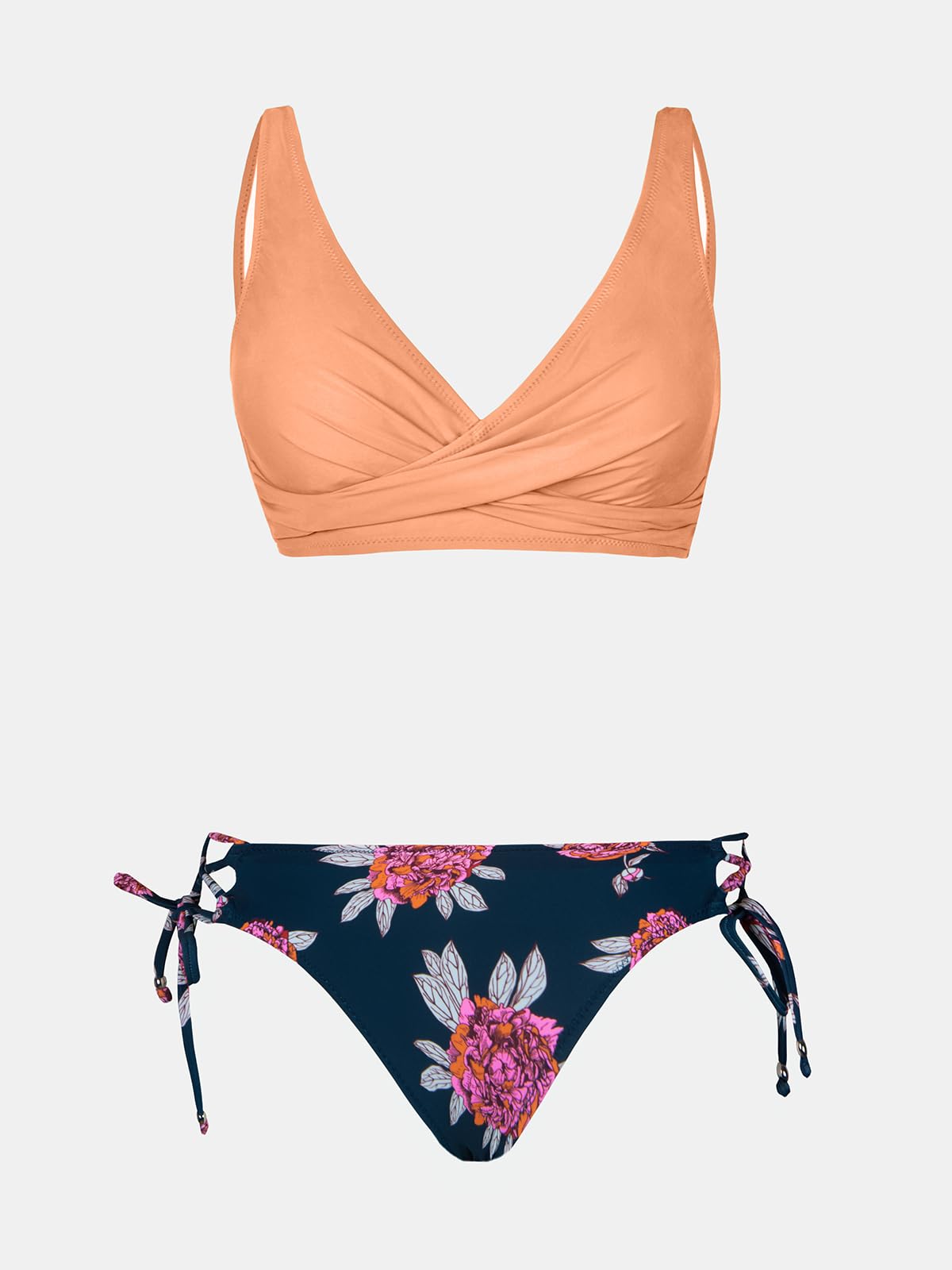 • Design: Twist Front Bikini Top. Tie Side and Floral Print Bikini Bottom; About Cup Style: With Removable Padded Cups