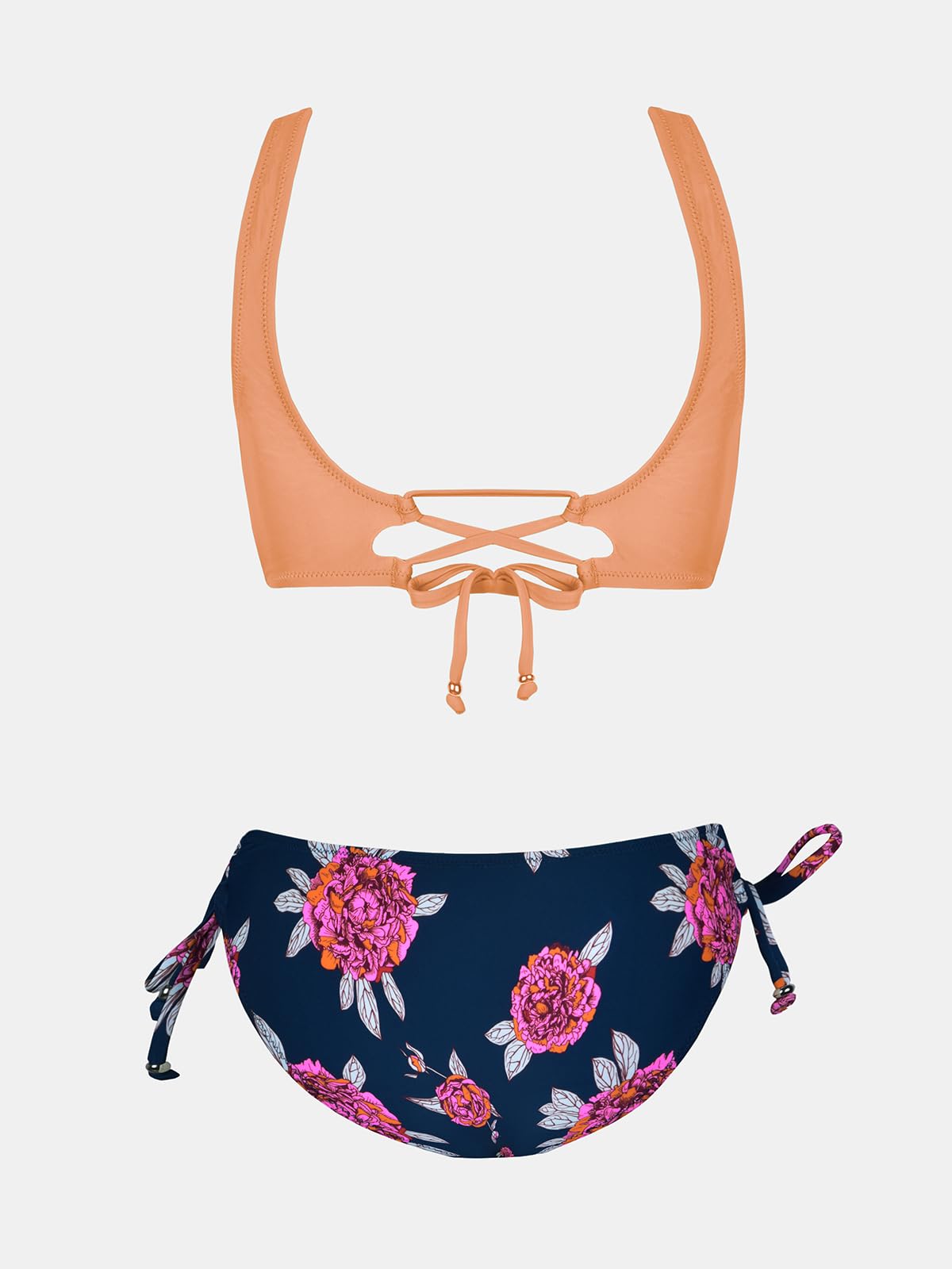 CUPSHE Women's Peach and Purple Floral Front Cross Lace Up Bikinis M