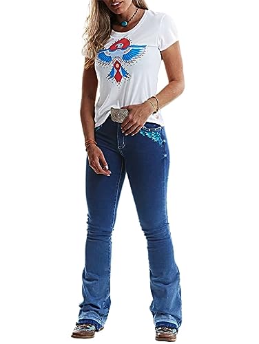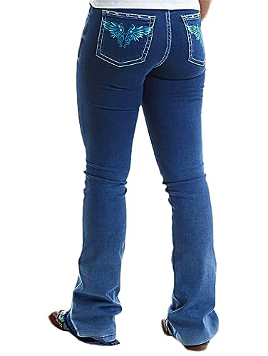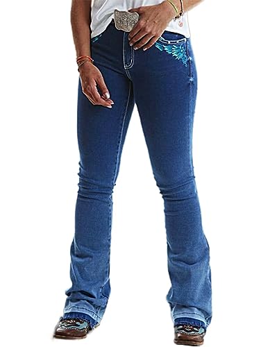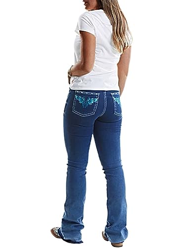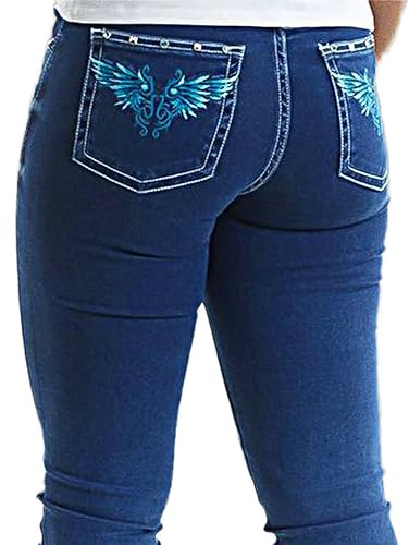Flamingals Women's Graphic Pattern Bootcut Jeans Without Belt Low Waist Casual Pants Navy Blue L