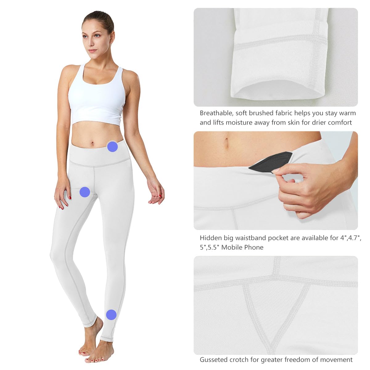 BALEAF Women's Fleece Lined Leggings Thermal Warm Winter Tights High Waisted Thick Yoga Pants Cold Weather Inner Pocket White M