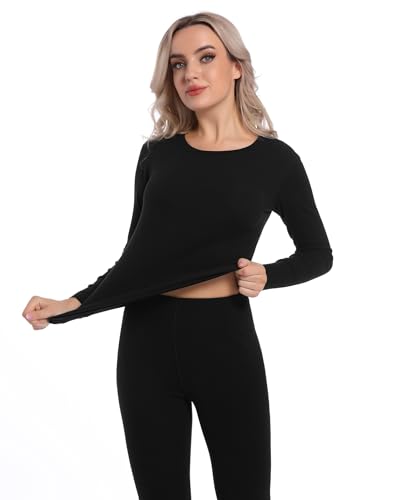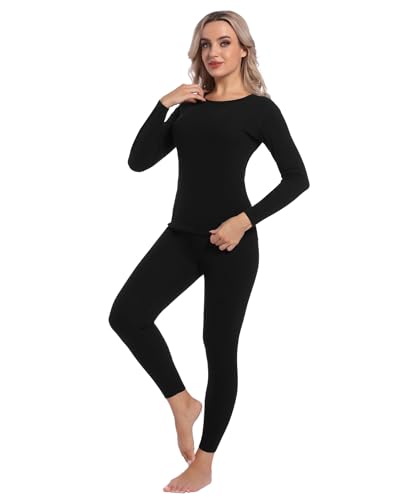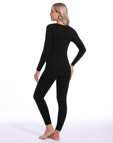 INNERSY Women's Thermal Underwear Set Ultra-Soft Long Johns Base Layer for Cold Weather(Black(Standard Warm),Small)