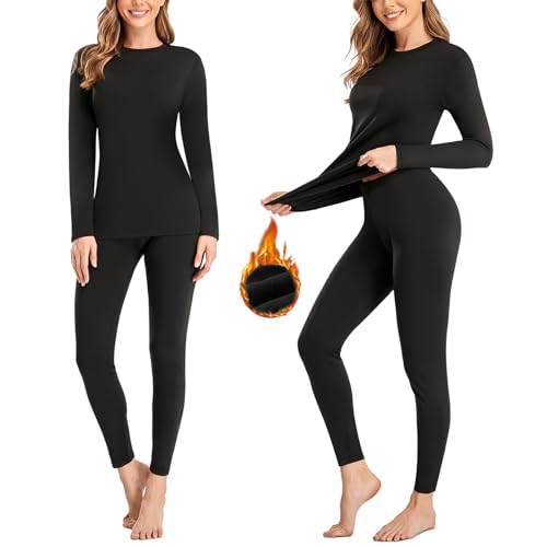 SIMIYA 2 Pack Thermal Underwear for Women Long Johns Winter Warm Fleece Lined Base Layer Set Cold Weather Top and Bottom