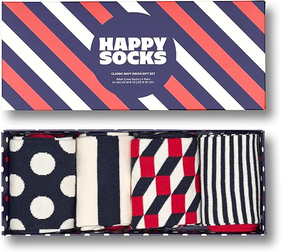 Happy Socks Stripe Socks Gift Box Navy/Red/White 36-40