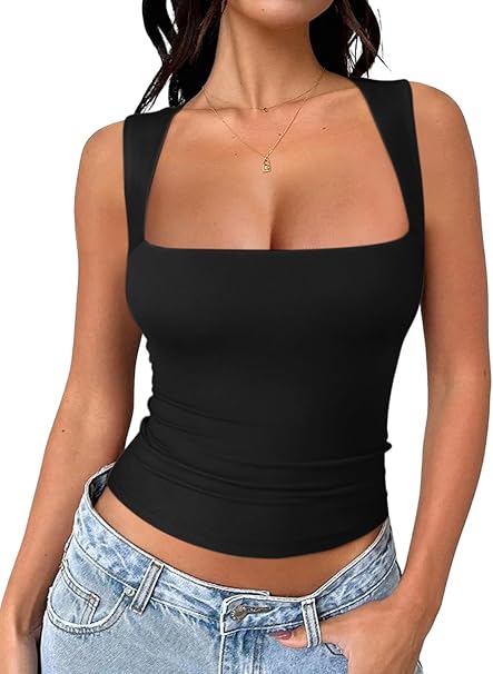 REORIA Butsmoothïë Women's Square Neck Going Out Crop Tops Double Lined Cute Basic Tank Tops 2025 Clothes