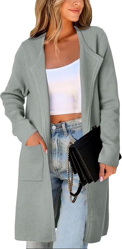 Women's Open Front Cardigan Sweater Long Sleeve Casual Knit Lapel Coatigan Coat