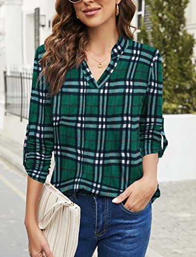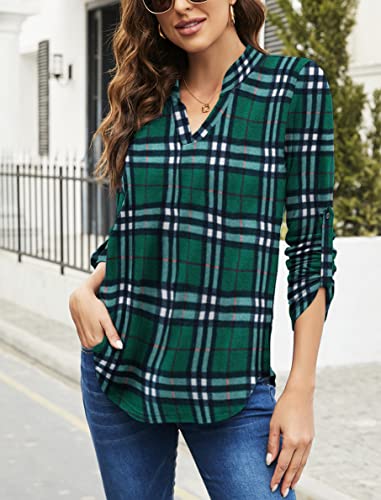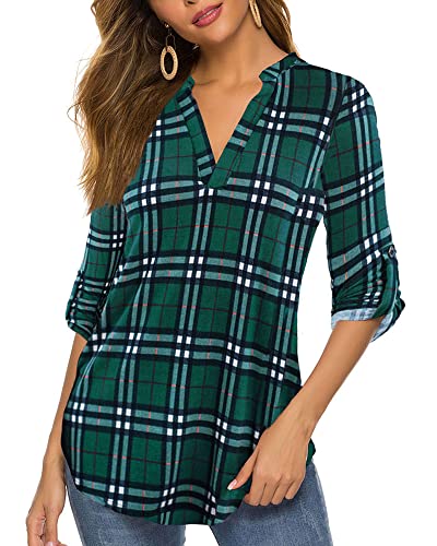 Details: Lightweight and Stretchy, Roll up 3/4 sleeve tunic tops, V neck shirt, Print or solid, Hip length, Pleated flowy dressy casual style.