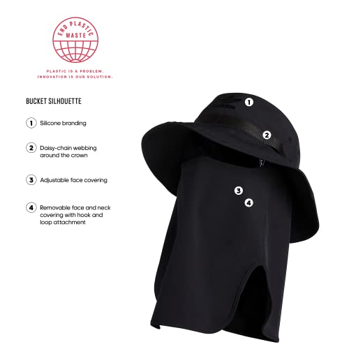 Details: Practical yet stylish, this adidas bucket hat lets you choose your level of coverage. A removable face covering fastens to the hat with a hook-and-loop attachment.