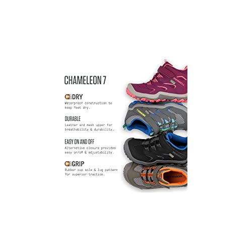 Details: Inspired by chameleon's adaptability to changing conditions, the chameleon 7 has a waterproof construction to keep feet dry and superior traction on all kinds of surfaces. Durable and lightweight makes it a great shoe for kids whether they are going on a hike or hitting the playground.