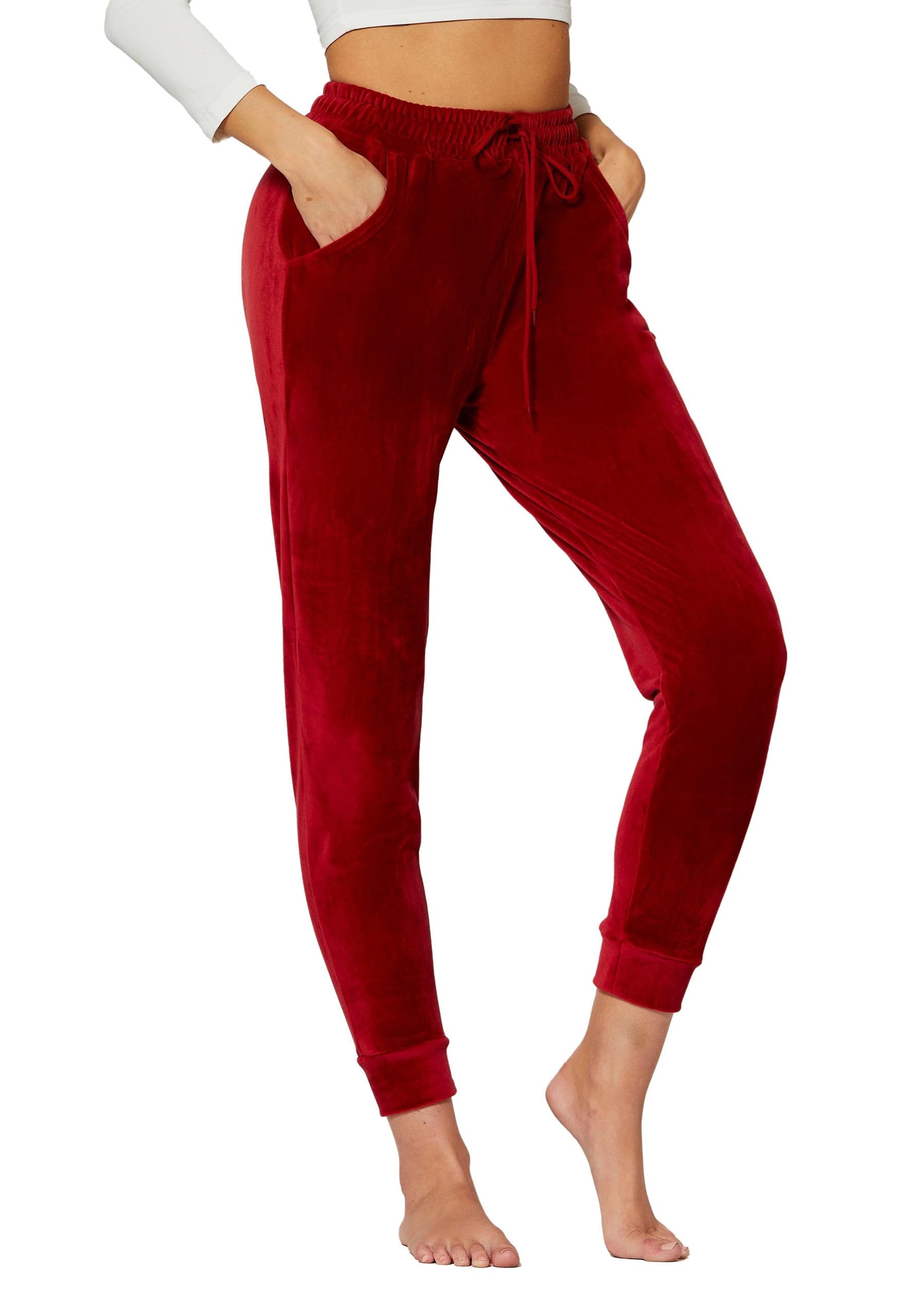 Details: Conceited Velour Velvet Leggings for Women - A236 - Burgundy - Small