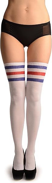 LissKiss Blue & Red Stripes On White (Referee) - Over The Knee Socks