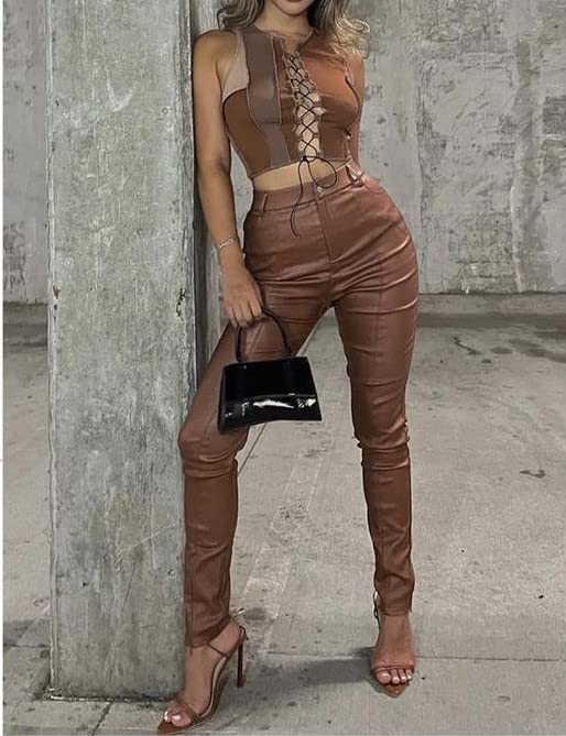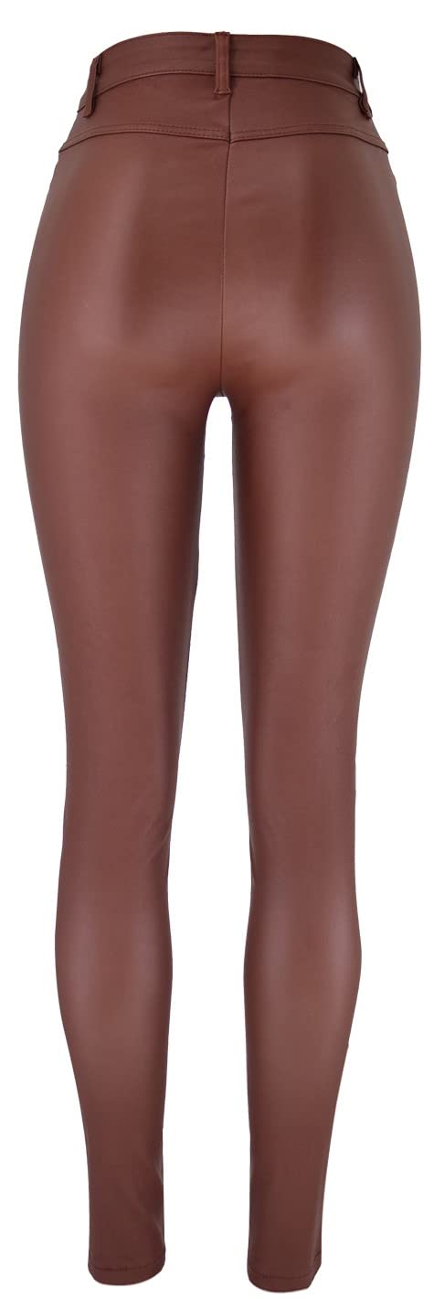 WAYRUNZ Womens High Waisted Stretch Faux Leather Pants PU Coated Legging Juniors (031-light Brown 5)