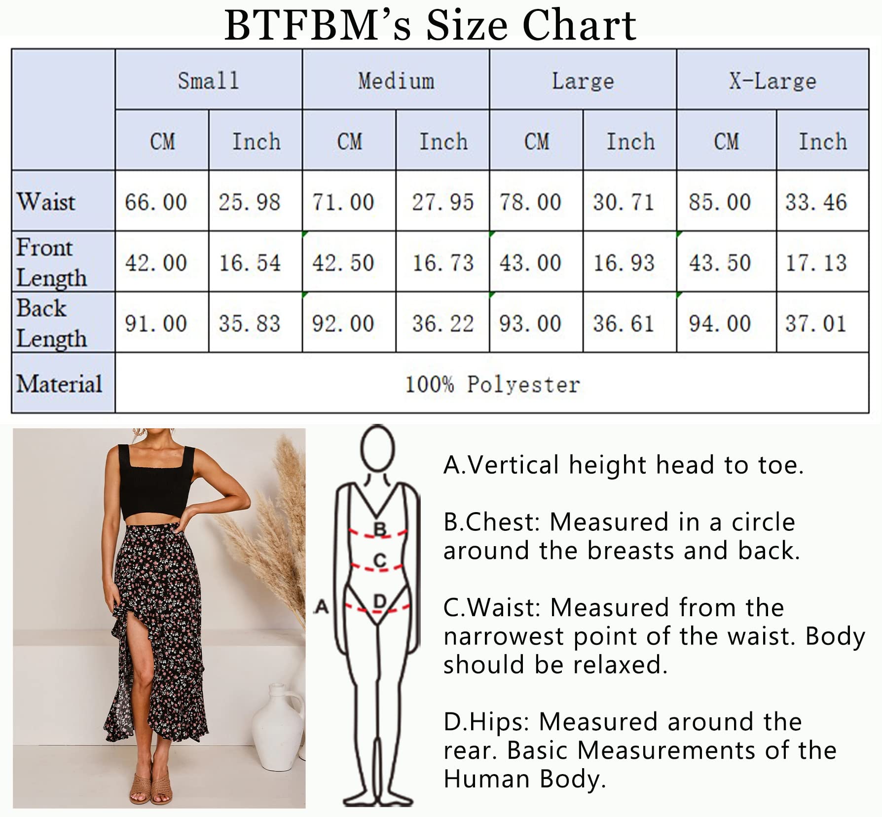 BTFBM Women High Waist A Line Fashion Party Maxi Skirt Floral Pattern Ruffle Wedding Long Dress With Side Split Hem