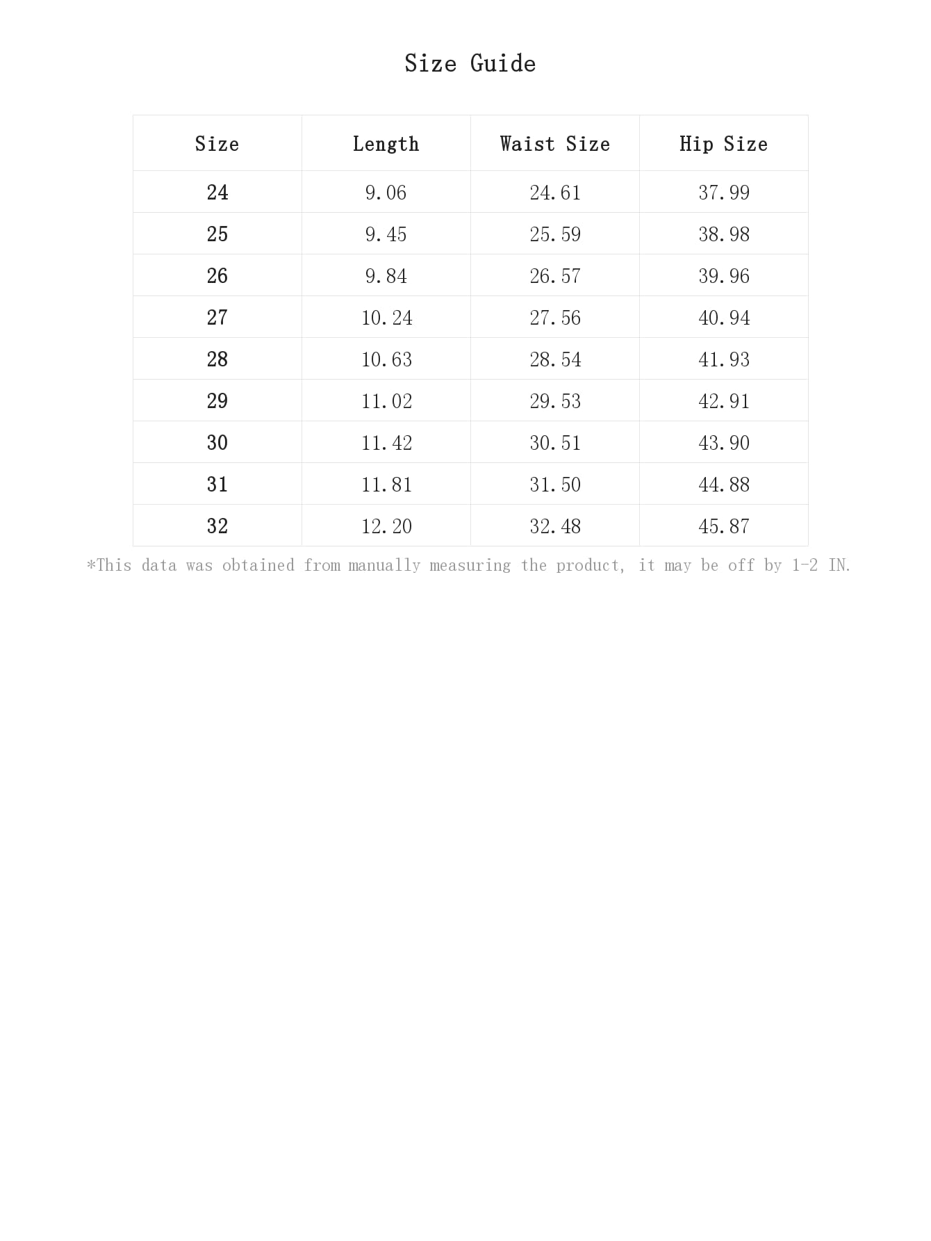 24:Hip Size:38.0IN,Length:9.1IN,Waist Size:24.6IN