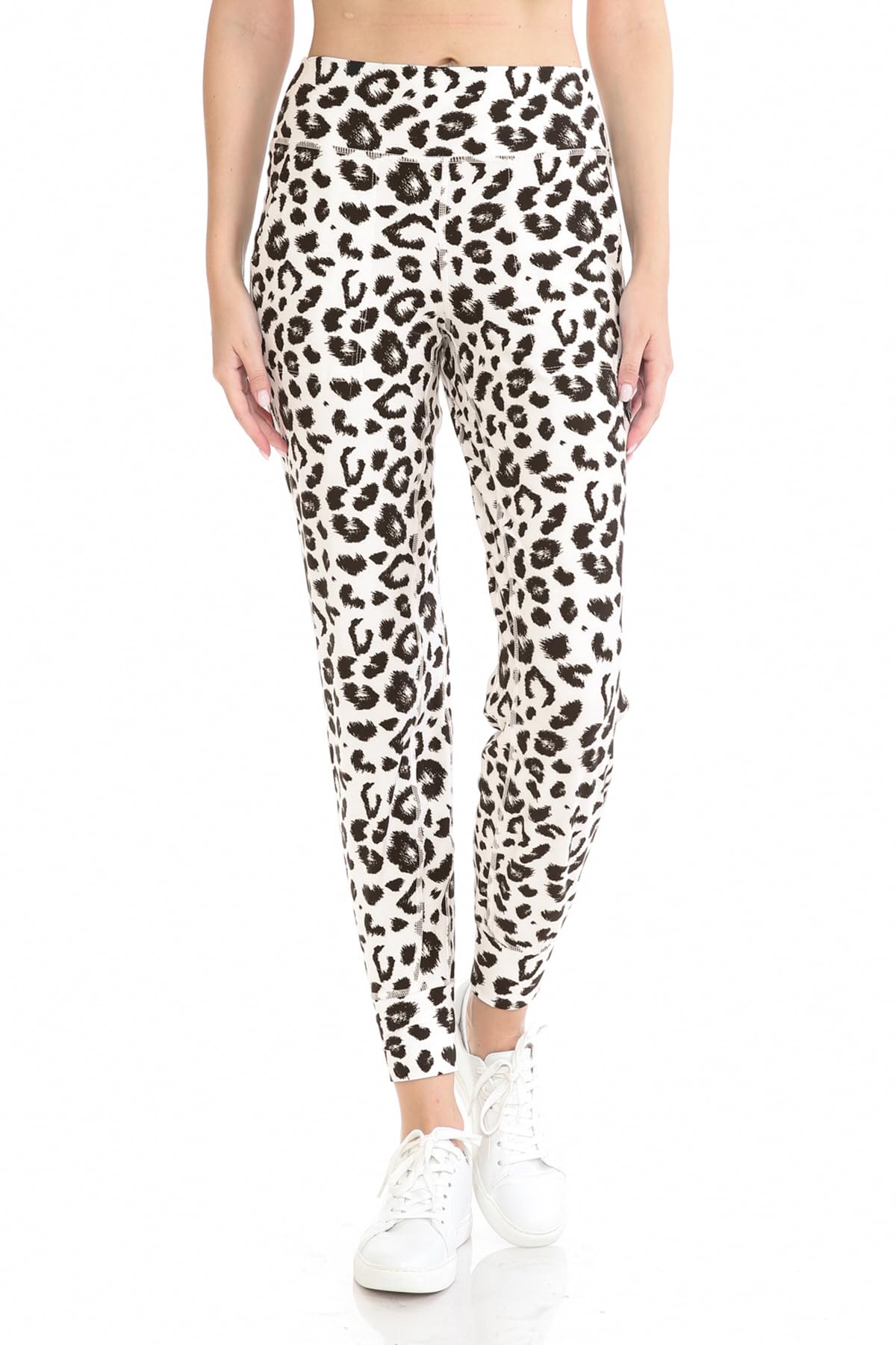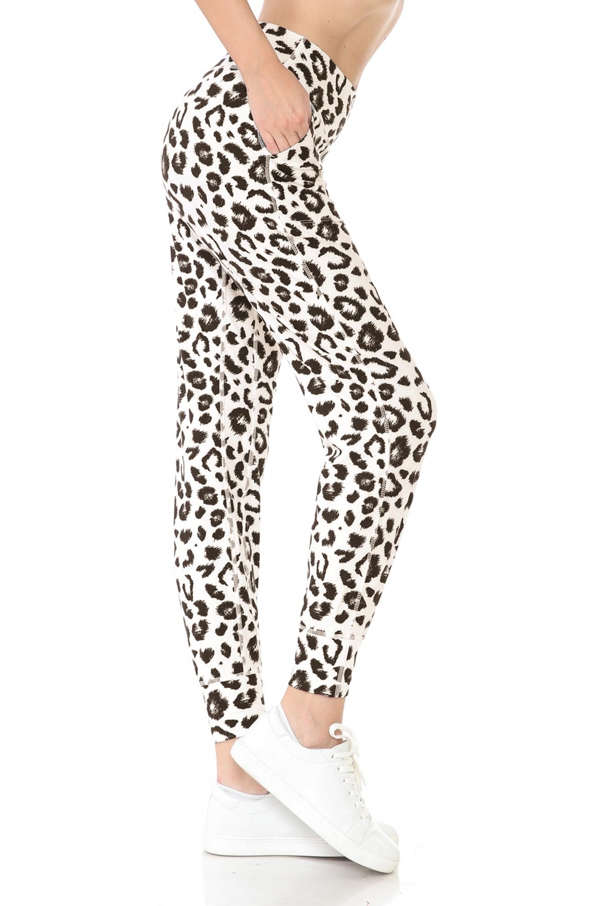 Leggings Depot ActiveFlex Jogger Yoga Pants with Pockets (Full Length, White Leopard, X-Large)