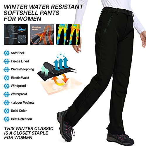 Details: Women's Outdoor Windproof Waterproof Soft Shell Fleece Warm Hiking Mountain Ski Tactical Pants Trousers