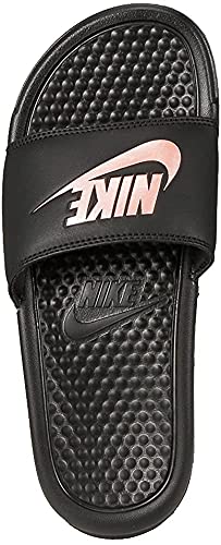 Nike Womens Benassi Just Do It Slide Sandal (BLACK/ROSE/GOLD, numeric_7)