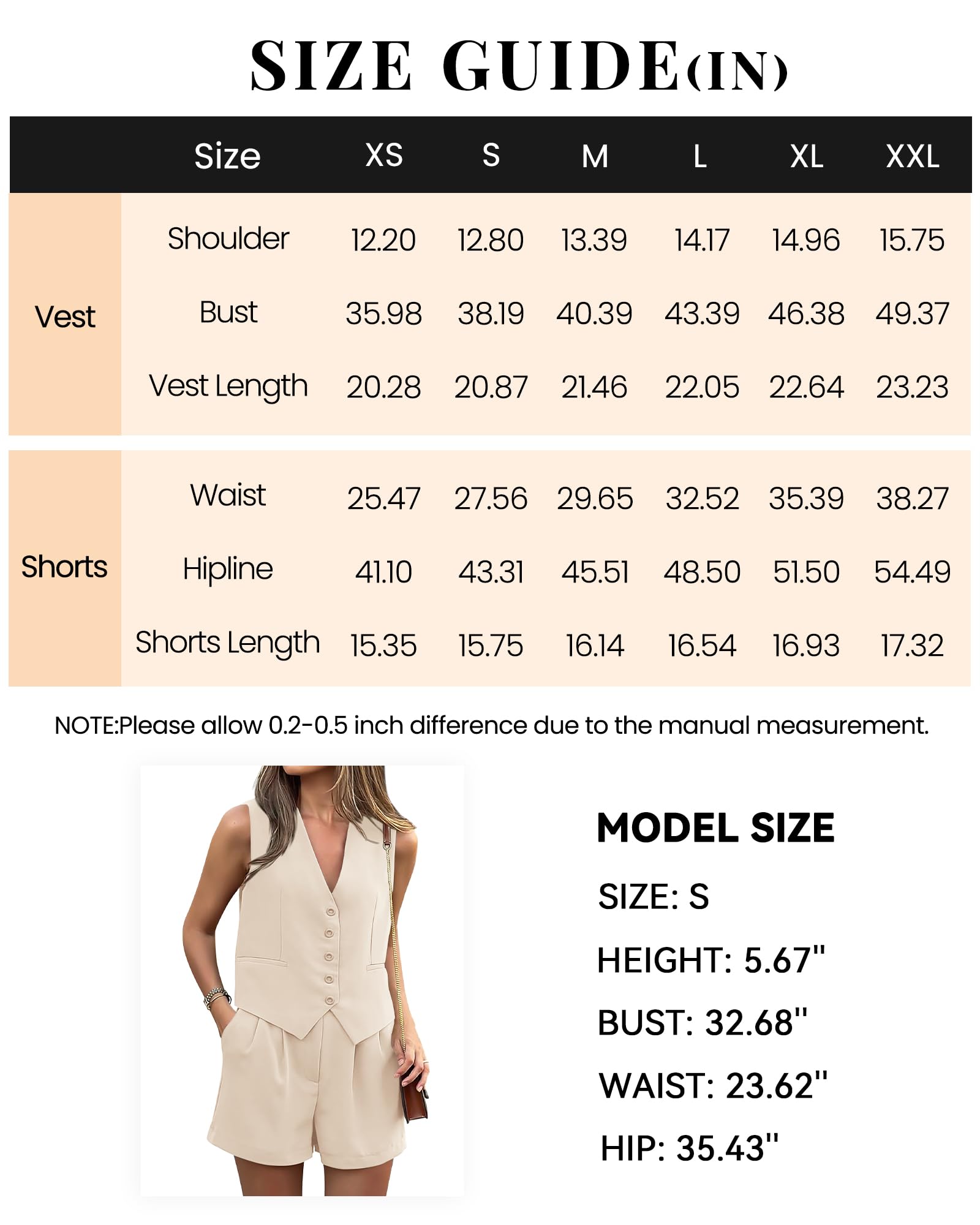 • Feature: XS=US 0-2, S=US 4-6, M=US 8-10, L=US 12-14, XL=US 16, XXL=US 20 / Women's Summer Two Piece Blazer Sets 2024 / V Neck Sleeveless Top / Button Down Shirt / Blazer Vest For Women / Womens Rompers / High Waisted Short Sets / Loose Shorts For Women / Classic 2 Piece Sets For Women / Short Sets For Women 2 Piece / Business Work Office Outfits / Tips: The Pocket Of The Top Is Used For Decoration