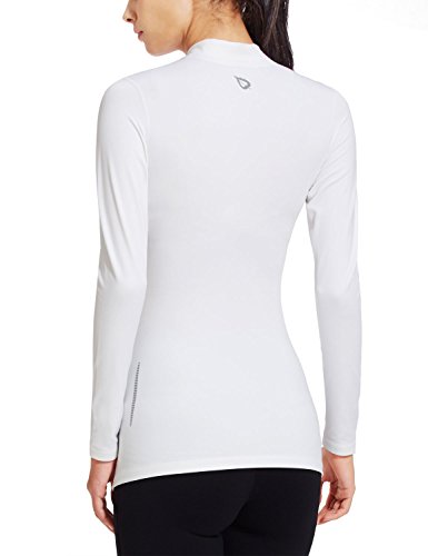 BALEAF Thermal Long Sleeve Running Shirt Women Workout Tops Gym Clothes Mock Neck Fleece Hiking Skiing Base Layer for Winter Cold Weather White M