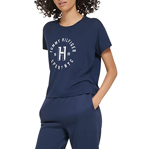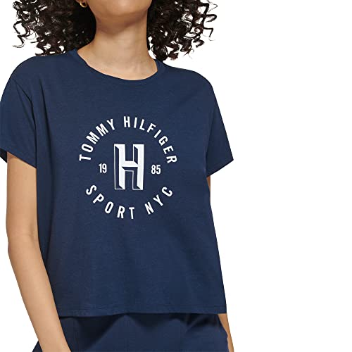 Details: This Tommy Hilfiger Sport womens Sport T-shirt is a boxy fit short sleeve printed chest graphic global stripe on back